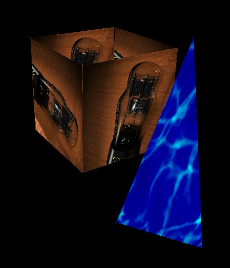 Also supported are means of combining multiple structures into one. This process includes concatenating lists of triangles and light source from the structures and computing the union of their bounding boxes. The need for this is obvious, since the user will want to build up the structure of a complex object from simpler structures.